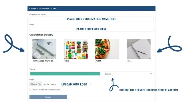 You will also be able to select the theme's color of your platform e and upload your logo, but you can also customize those things on the admin panel.